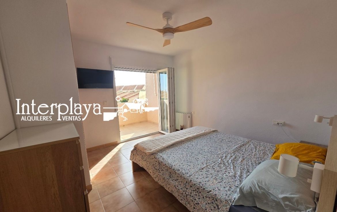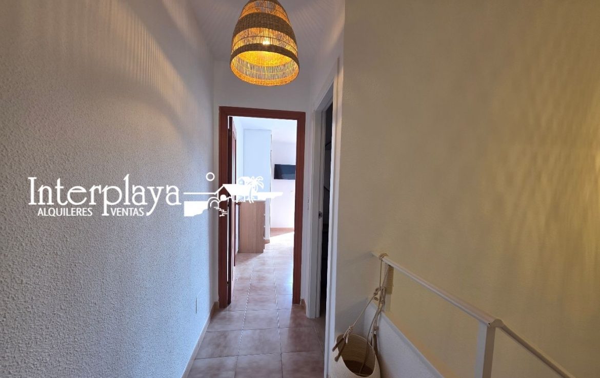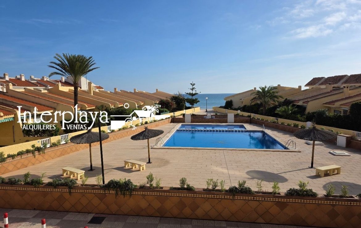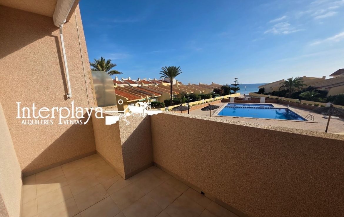 Descubre esta espectacular dúplex adosado en venta, ubicada en el km. 6 de La Manga del Mar Menor, urbanización El Galán, este inmueble de 100 m² ha sido reformado integralmente en 2023, ofreciendo un diseño moderno y funcional. Con dos amplios dormitorios, ambos con armarios empotrados y un acceso privilegiado desde el dormitorio principal a una terraza que ofrece vistas frontales a la piscina y al mar, este hogar es perfecto para disfrutar de la vida junto al Mediterráneo.
