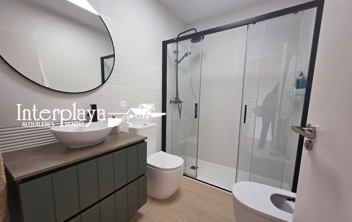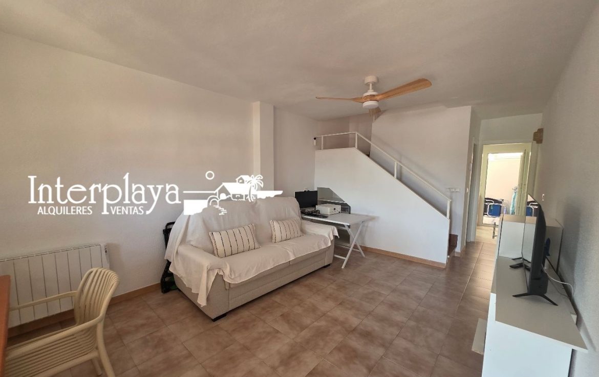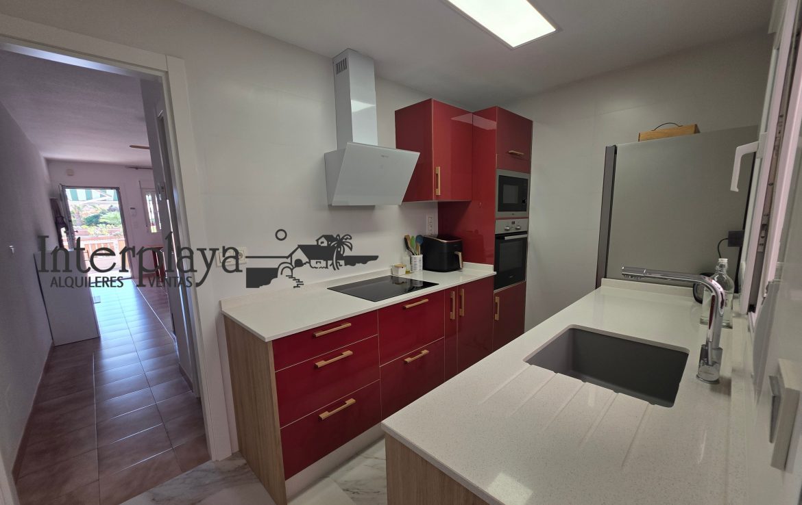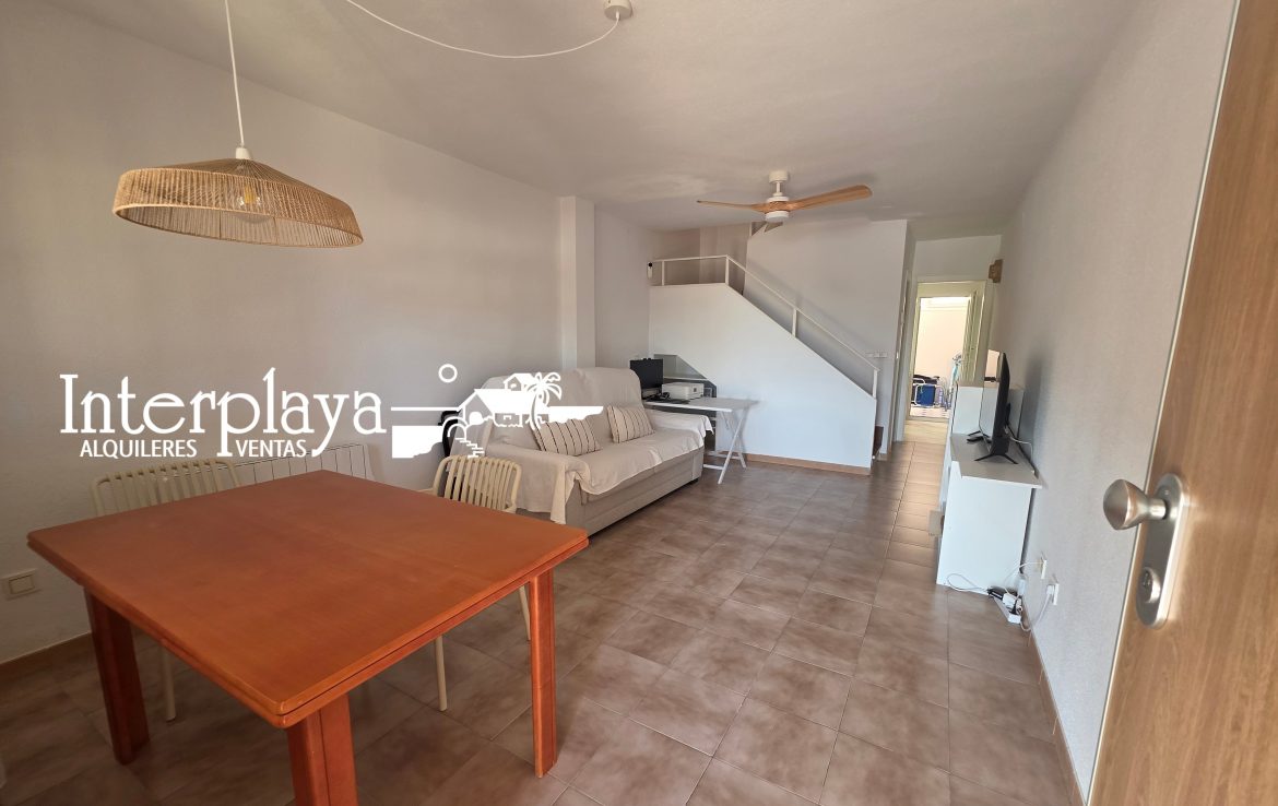 Descubre esta espectacular dúplex adosado en venta, ubicada en el km. 6 de La Manga del Mar Menor, urbanización El Galán, este inmueble de 100 m² ha sido reformado integralmente en 2023, ofreciendo un diseño moderno y funcional. Con dos amplios dormitorios, ambos con armarios empotrados y un acceso privilegiado desde el dormitorio principal a una terraza que ofrece vistas frontales a la piscina y al mar, este hogar es perfecto para disfrutar de la vida junto al Mediterráneo.