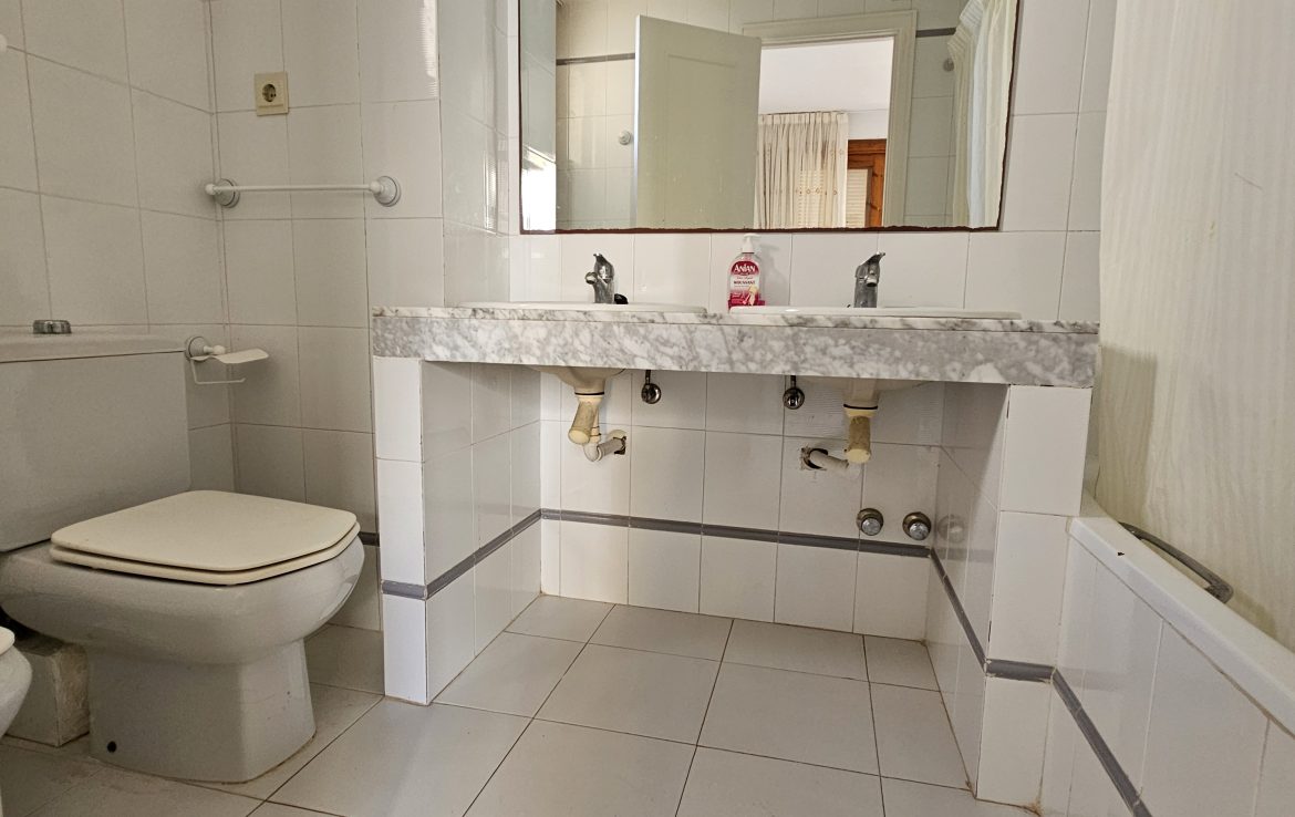 En la primera planta, disfrutarás de tres dormitorios adicionales, todos con armarios empotrados y acceso a una terraza que ofrece vistas espectaculares. Dos baños, uno de ellos con bañera redonda, completan esta planta. La propiedad es apta para personas con movilidad reducida, lo que la convierte en una opción ideal para todos.