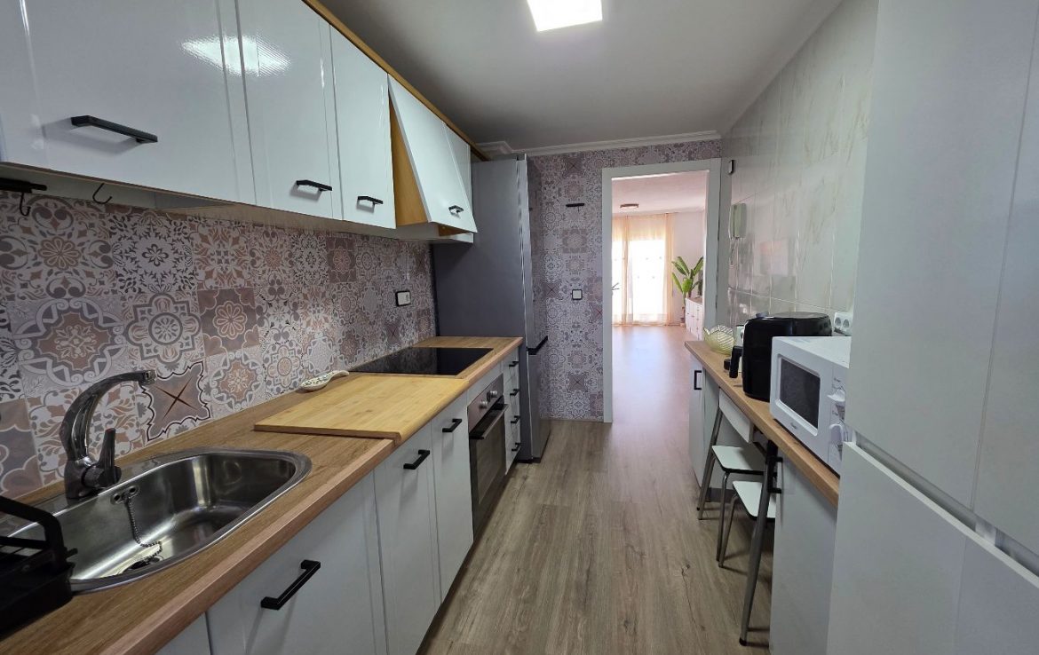 Disfruta de las vistas al Mar Menor desde la terraza de uno de los dormitorios y relájate en el salón-comedor, donde también encontrarás acceso a otra terraza con vistas al majestuoso Mar Mediterráneo. La cocina independiente, que incluye un práctico lavadero, está totalmente reformada y lista para que prepares tus platos favoritos.